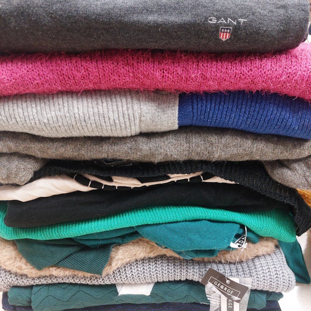 Mix různých druhů svetrů dámských v I. jakosti (okrajově nějaký pánský kousek)