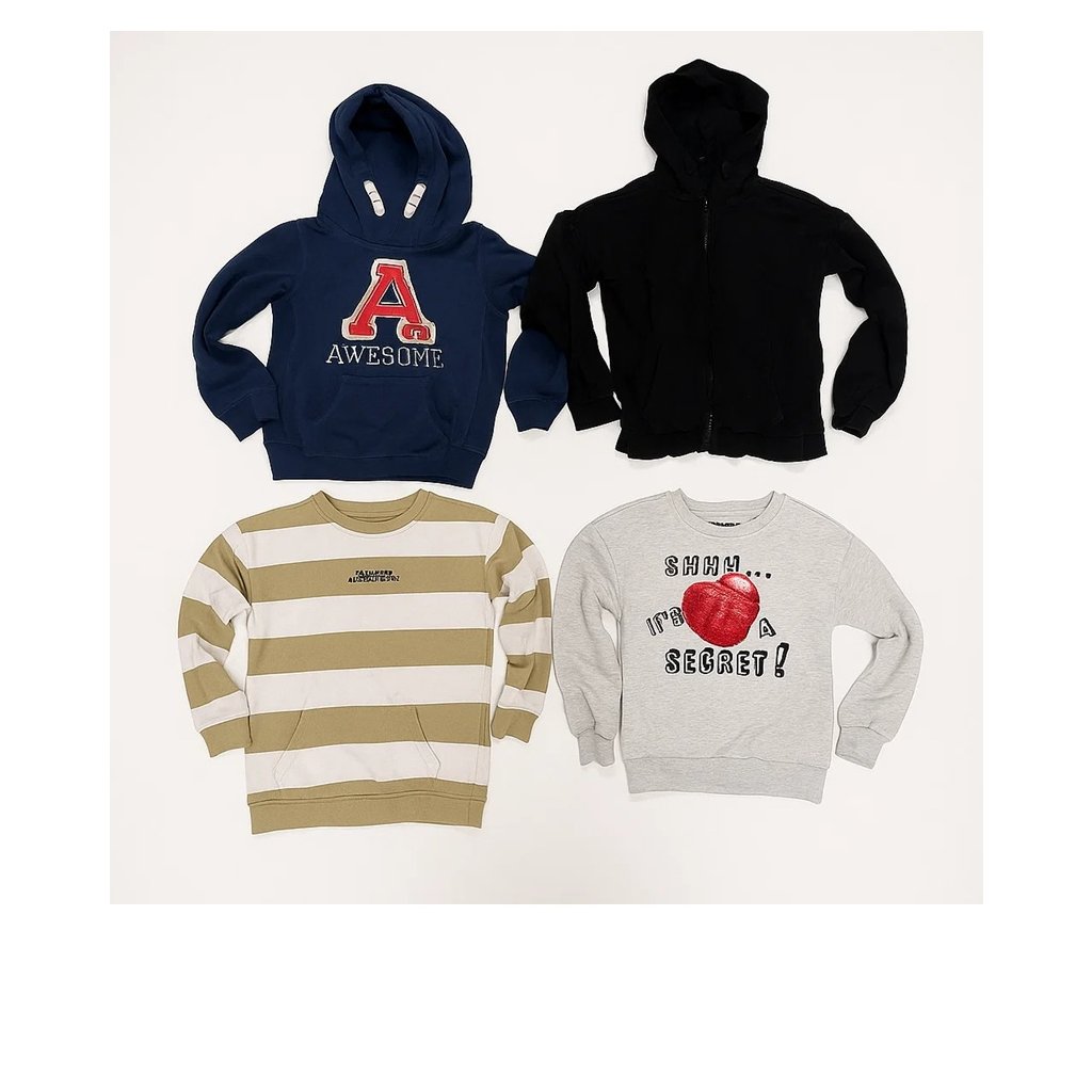 Dětské bavlněné mikiny mix kvalit, převažuje standard, 30% může být více obnošené či mít malou vadu, - to vykompenzují zase značkové či obrázkové kousky v I. jakosti