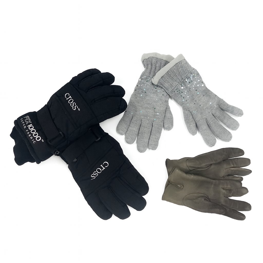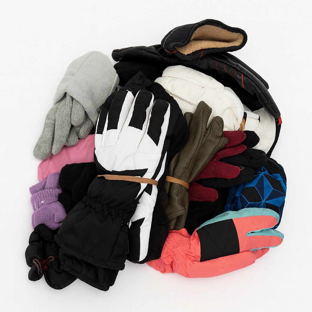 Dámské a pánské rukavice z různých materiálů (hadrové, pletené, lyžařské, kožené aj..) nošené, mix kvalit, vše spárované