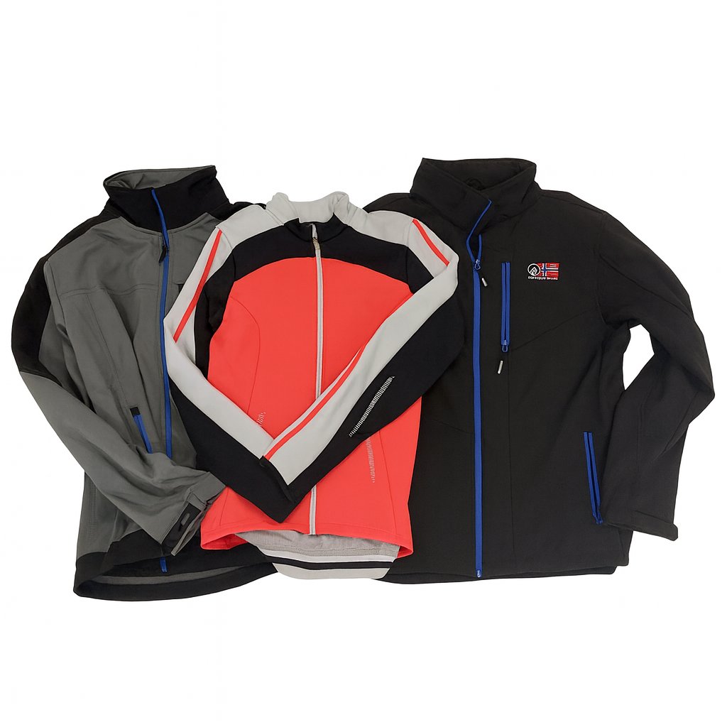 Mix bund z materiálu softshell. Většinou outdoorový styl, dámské a pánské