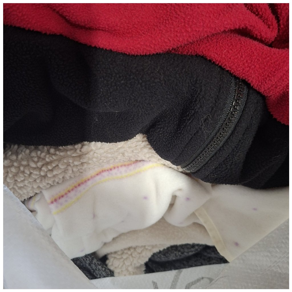 Toto konkrétní nafocené balení: 10 kg dospělých flísových mikin za 450 Kč