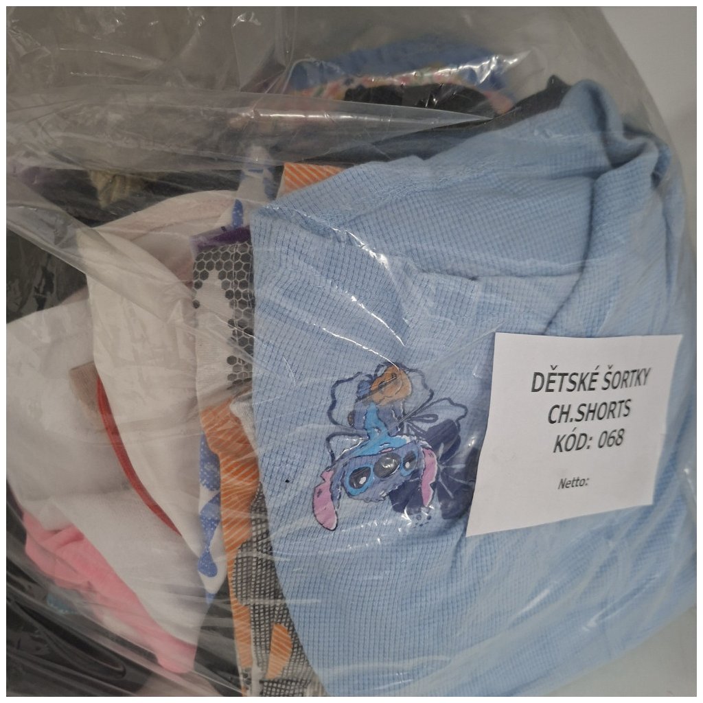 Toto konkrétní nafocené balení: dětské bavlněné šortky 4,5 kg za 650